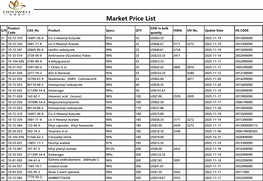 Odowell-Lista de prețuri de pe piață-2025.10.25-2025.11.25