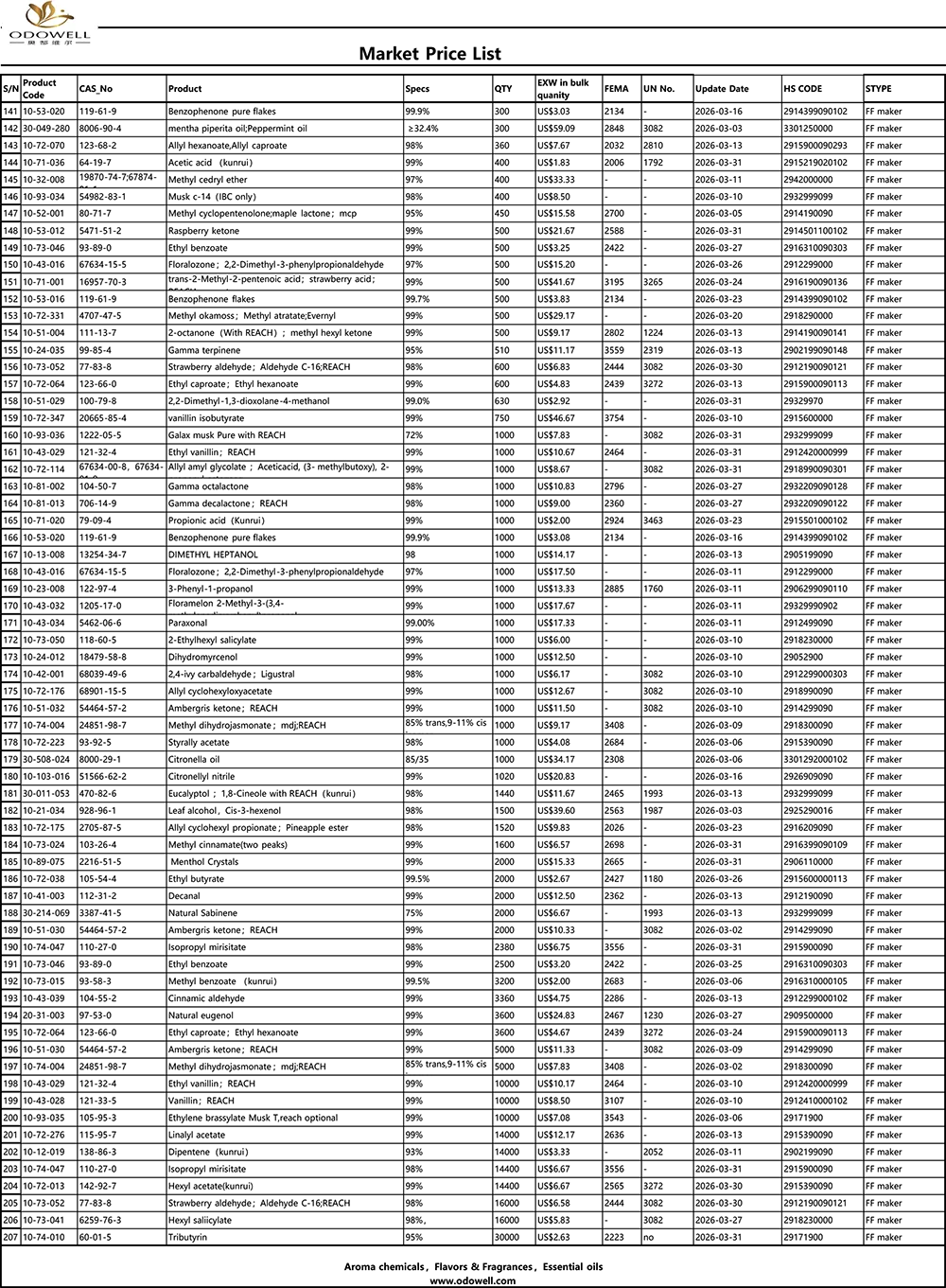 Odowell-Market Price List-2026.3.1-2026.3.31